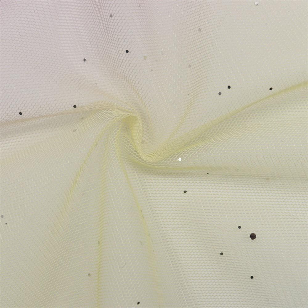 针织全涤网纱 彩虹烫片网纱 针织时尚公主童装七彩连衣裙面料定制